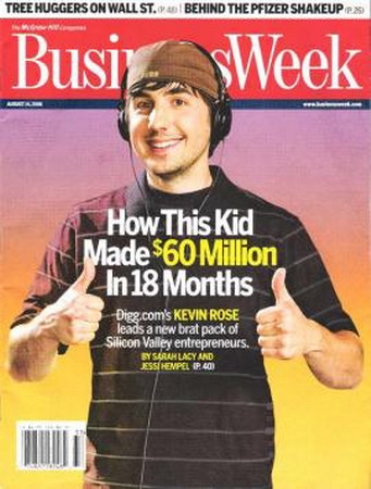 Digg CEO凯文•罗斯 数年前,媒体将社交新闻网站Digg CEO凯文•罗斯(Kevin Rose)与Facebook创始人马克•扎克伯格(Mark Zuckerberg)相提并论。现在,两人在媒体上的地位已是不可同日而语。